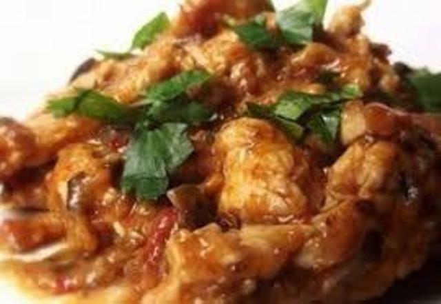 Mod de Preparare: Se taie carnea in cuburi mari, iar prazul in rotocoale fine. Pulpa a fost destul de grasa, atfel incat am pus-o direct in tigaia wok foarte bine incinsa, fara sa mai adaug ulei. Se perpeleste bine carnea. Se condimenteaza cu sare si piper, se scoate din tigaie si se mentine calda. Se spala legumele, se curata si se taie cubulete. Se calesc in grasimea incinsa. Se amesteca bine pasta de rosii-kechup cu smantana.