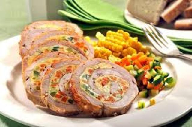 Mod de Preparare: Pulpa de porc dacă este bucată groasă se taie pe jumătate, dar nu până la capăt, vrem doar să obținem o bucată mai lată și mai subțire. Condimentăm pulpa cu sare și piper. Într-un castron amestecăm pasta de roșii cu usturoiul pisat, pătrunjel verde tocat mărunt, boia, fulgii de chilli, vinul roșu, cimbru și măghiran uscat. Cu jumătate din acest amestec ungem bine carnea pe una din părți, apoi rulăm. Legăm bine rulada cu sfoară. Ungem cu restul de amestec rulada pe dinafară.
