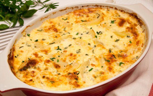 Mod de Preparare: Se fierb cartofii in coaja pana intra furculita usor in ei. Se fierb ouale tari. Se curata cartofii de coaja si se taie felii. Se curata ouale si se taie felii. Se prepara sosul alb astfel: se topeste untul pe foc mic. Se adauga faina si se amesteca pana este absorbita total in unt si arata ca o crema. Se adauga laptele fierbinte, incet, ca uleiul la maioneza si amestecand non-stop cu telul in sos... pana terminati laptele. Imediat ce ati terminat laptele adaugati smantana si amestecati rapid sa se omogenizeze. Lasati la fiert la foc mic, amestecand non-stop, pana sosul se ingroasa usor si arata ca o crema. Luati sosul de pe foc si adaugati putina sare in el. Ungeti un vas termorezistent (15 x 23 cm) cu unt. Asezati un strat de cartofi peste care presarati sare (atentie! branza burduf este si ea sarata) si macinati piper negru. Deasupa puneti din loc in loc cateva felii de oua. Printre feliile de oua presarati branza burduf. Deasupra turnati 1/3 din sosul alb. Reluati straturile pana terminati cartofii (mi-au iesit 3 straturi de cartofi, de aceea am folosit 1/3 sos alb peste fiecare). Ultimul strat va fi de cartofi presarati cu sare si piper. Deasupra se toarna restul de sos alb si se presara cascavalul razuit. Se da la cuptor, la 200C, pentru 30-40 minute, pana branza e rumena.