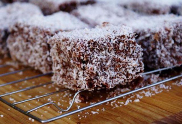 GLAZURA: Se pun pe foc intr-o craticioara apa, zaharul, cacaua si margarina. Se lasa sa fiarba pana devine un sirop mai gros precum glazura. Se lasa putin sa se raceasca apoi se adauga esenta de rom. Blatul se taie cubulete potrivite si se trece fiecare bucata prin glazura de cacao apoi se tavalesc prin nuca de cocos.