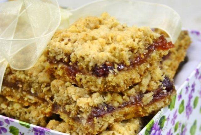 Mod de Preparare: Punem faina intr-un bol apoi taiem margarina cubulete (margarina rece) si o mestecam cu mainile impreuna cu faina pana cand obtinem un aluat sfaramicios. Adaugam urmatoarele 6 ingrediente si amestecam bine. Impartim coca in doua si presam cu mainile o jumatate din coca in tva unsa bine cu margarina. intr-un castron vom amesteca gemul de caise cu gelatina de merisoare si adaugam aceasta mistura deasupra aluatului din tava. nivelam bine. In cealalata jumatate de coca vom adauga nucile prajite si sfaramate bucati mai mari apoi vom sffarama intre degete aluatul si il imprastiem deasupra prajiturii. Presam usor cu mainile aluatul de deasupra si coacem prajitura in cuptorul preincalzit la 175ºC pana cand se rumeneste usor (cca 30 minute). Se lasa la racit in tava apoi o taiem patratele si o servim. Ies aproximativ: 30 de bucati.
