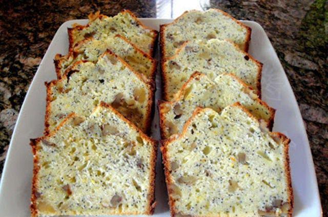 Mod de preparare: Freci untul cu zahărul, adaugi ouăle unul câte unul, coaja și zeama de portocală, mierea și 1 lingură de făină. Încorporezi iaurtul, făina, praful de copt, nuca tăiată, macul și amesteci ușor. Torni compoziția într-o tavă de chec tapetată cu hârtie de copt și unsă cu unt. Decorezi cu miez de nucă și presari zahăr pudră. Dai la cuptor pentru 45 de minute.