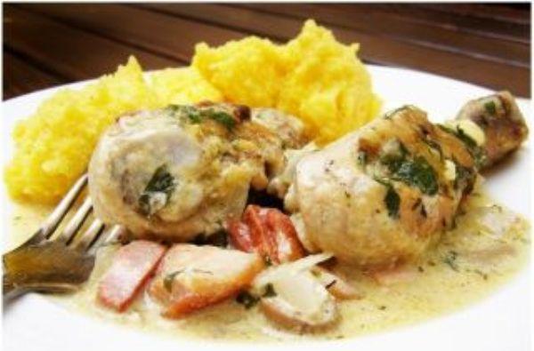 Mod de Preparare: Condimentezi carnea cu sare, piper, cimbru, boia. Intr-o oala potrivita (care se poate da apoi la cuptor) se pun la prajit pulpele in jumate lingura de unt. In paralel preincalzesti cuptorul la 190 de grade si intr-un ibric pregatesti supa de pui punand la fiert 200 ml de apa cu doua lingurite de legume deshidratate sau un cub Knorr. Cand pulpele s-au rumenit cat de cat, torni 100 ml de supa peste ele, le mai lasi un minut pe foc si le dai la cuptor 15-20 de min.