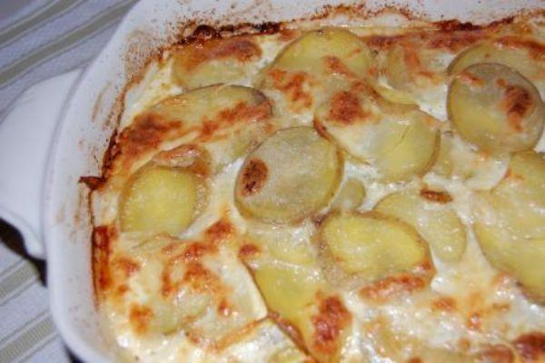 Mod de Preparare: Cartofii se fierb în coaja, în apa cu sare, se scurg si se curata. Separat, se fierb ouale, dupa care se trec sub jet de apa rece. Se unge cu unt un vas termorezistent si se aseaza în straturi jumatate din cantitatea de cartofi taiati rondele. Deasupra se pun ouale taiate felii, se adauga smântâna, se potriveste de sare si piper si se pun cartofii ramasi. Se presara cascavalul ras, patrunjelul verde tocat si se da vasul la cuptorul incalzit in prealabil, pana se rumeneste deasupra.