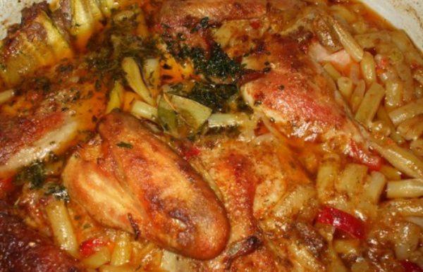 Mod de Preparare: Pui fasolea la fiert cam jumate de ora, intr-o oala cu capac, cu apa cat sa o acopere. Pulpele le speli, mararul il toci, usturoiul il tai marunt. Pui ulei in tigaie si cand s-a incins, pui pulpele pana se rumenesc. Apoi le scoti pe-o farfurie alaturi. Cand fasolea s-a inmuiat, pui peste ea pulpele de pui, uleiul in care s-a prajit carnea, piperul, sarea si lasi la fiert inca jumate de ora. Apoi pui rosiile, usturoiul, verdeata si mai lasi inca 15 min. In cazul in care sosul e prea lichid, se poate ingrosa cu putina faina ori maizena, pusa cu cateva minute (vreo 10) inainte dea opri focul.