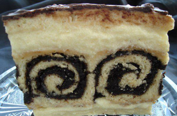 amesteci faina, margarina, zaharul, oul si praful de copt, adaugand lapte caldut putin cate putin, pana cand obtii un aluat care poate fi intins. Aluatul obtinut il imparti in 6 bucati egale. Din 2 bucati, coci doua foi de marimea tavii, pe dosul acesteia. Celelalte 4 parti le intinzi si pe ele una cate una si le umpli cu compozitia de mac. Coci cele 4 rulade in interiorul tavii care a fost tapetata cu hartie de copt.
