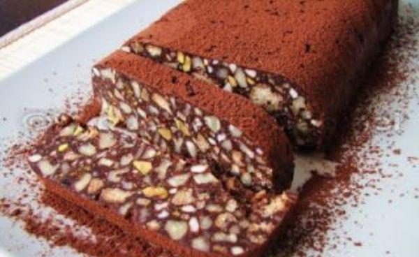 Mod de Preparare: Maruntim cu nucile, caju si fisticul, apoi biscuitii digestivi. Taiem curmalele in bucatele cat mai mici. Amestecam toate aceste ingrediente si le dam deoparte. Topim ciocolata impreuna cu untul (nu trebuie sa ajunga la punctul de fierbere), luam de pe foc si adaugam esenta de rom, mierea, zaharul vanilat si un praf de sare. Turnam acest amestec peste mixul de nuci si omogenizam bine. Punem compozitia obtinuta intr-o tava tapetata cu folie de plastic (lasand surplus pe margini). Presam bine compozitia, nivelam si infoliem. Se ta tavita la frigider pentru cateva ore, daca rezistati puteti sa o lasati si peste noapte. Cand v-ati hotarat sa o taiati, scoateti tava din frigider, indepartati folia de plastic, puneti prajitura pe un platou, pudrati cu cacao si ... bucurati-va de cateva momente dulci.