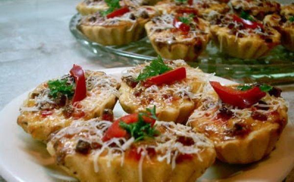 Mod de Preparare: Se framanta aluatul, se acopera si se lasa la rece 1/2 ore. Pentru umplutura. Se taie cubulete mici salamul si ardeiul. Cascavalul se da pe razatoarea mica. Se bat ouale, se pune smantana si se amesteca cu ardeiul salamul si patrunjelul. Se imbraca forme mici de tarte, se pune umplutura si se dau la cuptor la foc potrivit 40 min. Peste ele calde se rade putin cascaval; din aceasta compozitie au iesit 18 bucati.