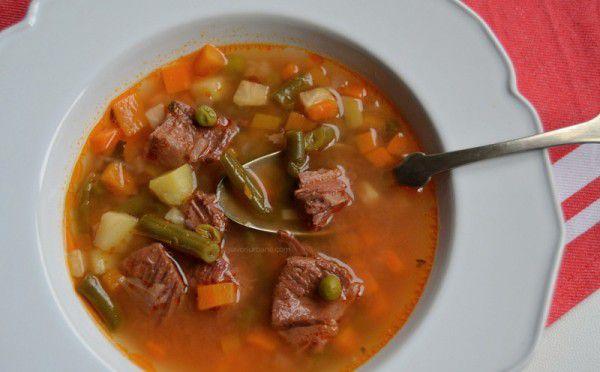 Mod de Preparare: Se fierbe carnea de vita la foc mic si se spumeaza, timp de 2 ore jumatate sau pana o gustati si este frageda. Se completeaza cu apa fierbinte, pana la 4 litri. Se adauga ceapa, morcovii, telina, gulia, pastarnacul, toate taiate marunt. Dupa ce dau in clocot se adauga fasolea verde si rosiile de la conserva. Se lasa 5 minute apoi se adauga bors, delikat si piper dupa gust. Se presara patrunjel dupa ce s-a stins aragazul.