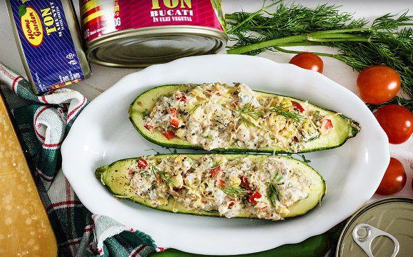 Mod de Preparare: Fierbeti melcisorii conform instructiunilor de pe ambalaj, clatitii in apa rece, strecuratii si punetii intr-un castron. Adaugati tonul faramitat cu furculita. Curatati morcovul si dati-l pe razatoare, puneti-l in castronul cu ton si melcisori. Adaugati telina tocata marunt, maioneza, sucul de lamaie, sarea, piperul; amestecati bine ingredientele. Indepartati capetele castravetilor, taiatii pe jumatate in lungime si scobiti-le miezul, apoi umpletii cu compozitia de ton obtinut anterior. Castraveti umpluti cu ton, paste si legume se dau la frigider cel putin o ora inainte de a-i servi.
