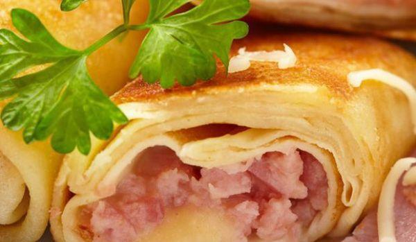 Mod de Preparare: pentru clătite se amestecă bine cu mixerul toate ingredientele. Se coc 10 clătite şi apoi se pun deoparte. Se dă caşcavalul pe răzătoare şi se repartizează pe cele 10 foi de clătite. Se taie şunca în fâşii. Se repartizează deasupra caşcavalului şi apoi fiecare clătită se rulează. Se servesc calde.