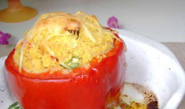 Mod de Preparare: fierbem supa, adaugam couscous-ul amestecam putin si acoperim. Lasam sa se umfle timp de 5 minute. Intre timp tocam ceapa si rosia cubulete. Le adaugam peste couscous, amestecam si potrivim de sare. Ardeiului ii taiem un capac deasupra si ii scoatem cotorul. Il ungem cu putin ulei de masline. Il umplem cu compozitia de mai sus. Pe deasupra punem cascaval ras. La cuptorul preincalzit la 180 grade C, pana se topeste cascavalul, capata o crusta frumoasa si ardeiul se inmoaie.