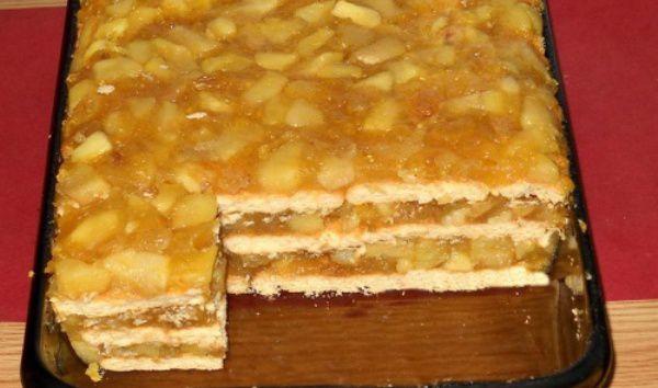 Mod de preparare: Mai intai punem stafidele la inmuiat in rom. Merele curatate le taiem in cubulete mici. Intr-o cratita punem 500 ml apa cu zaharul la fiert. Cand s-a topit zaharul adaugam merele pe care le lasam doar sa se inmoaie fara sa se zdrobeasca. Dizolvam cele 4 plicuri de budinca in cei 150 ml de apa ramasi si le adaugam peste mere, lasand sa mai fiarba cateva minute (2-3), amestecand continuu. Cand este gata adaugam stafidele, un praf de sare si scortisoara. Asezam un rand de biscuiti intr-un vas dreptunghiular, apoi un strat din crema de mere fierbinte. Asa procedam in continuare. In final trebuie sa avem 3 straturi de biscuiti si 3 de mere, ultimul fiind de mere. Se lasa sa se raceasca apoi o vom pune la frigider 2-3 ore, timp in care biscuitii se vor inmuia si vom putea taia prajitura.