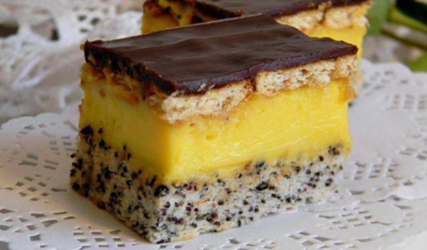 Mod de Preparare: Albusurile trebuie sa fie la temperatura camerei, de asemenea si restul ingredientelor, pentru o reusita a blatului. Batem albusurile spuma cu un praf de sare si zaharul. Adaugam nuca de cocos si macul. Cu miscari de jos in sus amestecam. Turnam faina si praful de copt cernute. La fel amestecam cu miscari de jos in sus. Tapetam o tava cu hartie de copt (34 x 20 cm) si turnam compozitia. Dam la cuptorul preincalzit la 180 grade C, pentru 15-20 minute. Intre timp pregatim crema: amestecam galbenusrile cu zaharul si praful de budinca. Turnam laptele si fierbem crema pe baie de aburi pana se ingroasa. O lasam sa se raceasca bine. Cand este complet racita, adaugam untul la temperatura camerei si mixam crema pana devine omogena. O intindem pe blatul racit. Adaugam un strat de biscuiti simpli. Din 100 g ciocolata cu lapte, un cub de unt, 2 linguri zahar brun si 3 de lapte, am pregatit un sos. Le-a fiert pana s-au ingrosat. Cat era inca caldut l-a intins peste prajitura.