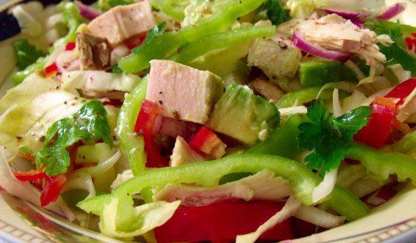 Mod de Preparare: Telina se da pe razatoarea mare. Se pune in bol. Apoi, de jur imprejur se pune un gulerash de salata taiata. Peste telina se aseaza un strat de castraveti murati taiati cubulete micute, apoi se adauga puiul taiat si el bucatele.se face iar un gulras de salata verde. Deasupra se pun 3- 4 linguri de sos, se decoreaza cu ardei gras colorat, chiar si gogosar rosu murat. Voi puteti pune un strop de ulei de masline.