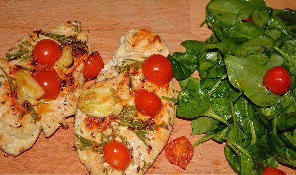 Mod de Preparare: Se taie cubulete mici jumatatea de ardei gras si rosiile si se amesteca cu patrunjelul tocat marunt si cascavalul ras. Pieptul de pui se pune pe grill si se asteapta sa se rumeneasca doar pe o parte, apoi pe o bucata de folie de Al, se pune pieptul, insa cu partea nefacuta in jos. Deasupra se pun 1-2 linguri din amestecul de mai sus. Se impacheteaza si se pune iar pe grillul incins. Se lasa sa se faca pieptul de pui. Cascavalul se topeste si tine legumele prinse de carne.