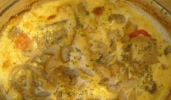 Intre timp, pregatim sosul de smantana, care va va imbraca fileul intr-o crema spumoasa, fina si delicioasa. Ciupercile din conserva (puteti folosi si proaspete) le distuiti in putin ulei de masline cu sare si piper si adaugati smantana. Se adauga sosul de smantana si ciuperci peste peste si se mai baga la cuptor pentru vreo zece minute. Dupa ce l-am scos din cuptor presaram niste patrunjel. La final, fileurile sunt bine patrunse, dar cremoase si foarte, foarte gustoase.