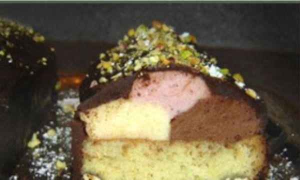Mod de Preparare: Se separa ouale, cele trei galbenusuri, 6 lg. zahar si 6 lg. de lapte, se pun pe abur pana se ingroasa putin, amestecand din cand in cand, apoi se iau si se pun la racit. Separat albusurile (3) se mixeaza cu 3 lg. de zahar. Frisca se bate, sa nu fie prea tare si se amesteca cu albusurile si cu galbenusurile, apoi se imparte compozitia in trei boluri. In primul bol se adauga capsunile amestecate cu 3 lg. de zahar, (pe foc se fierbe un minut si apoi se racesc). In al doilea bol se pun 100 gr. ciocolata neagra topita pe abur. In al treilea se pun 100 gr. ciocolata alba topita pe abur si esenta de vanilie. Deoparte gelatina se lasa la inmuiat in 4-5 lg. de apa, cateva minute apoi se pune pe abur sa se topeasca (sa nu fiarba) si pe urma se imparte egal in cele trei boluri (asa calduta) Se pune cu posul mare peste prima fasie de blat, crema alba, apoi langa ea crema neagra si peate ele la mijloc crema roza, o dam la frigider o ora.