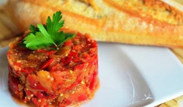 Mod de Preparare: Coacem vinetele, le curatam de coaja si le scurgem de sucul amar cca 2 ore. Curatam ceapa, o taiem fin si o calim intr-o craticioara de inox cu cei 250 ml de ulei. Adaugam treptat cate putina apa calduta sa se inmoaie si sa fiarba bine. Curatam ardeii si-i taiem feliute mai groase dupa care ii punem si pe ei in tigaie alaturi de ceapa si mai adaugam apa pana acestia s-au inmuiat bine. Vinetele le punem in robotul de bucatarie si le tocam bine pana se fac ca o pasta apoi le rasturam in cratita si amestecam cu ceapa si ardeiul. Punem o foaie de dafin, piperul boabe, sarea si coriandrul si amestecam. Cand au dat in cateva clocote adaugam bulionul si mai lasam sa fiarba cca 5 minute dupa care le bagam intr-o cratita emailata sau vas de yenna in cuptorul incins in prealabil la 180 ºC. Le lasam in cuptor pana scad (aprox. 1 ora).