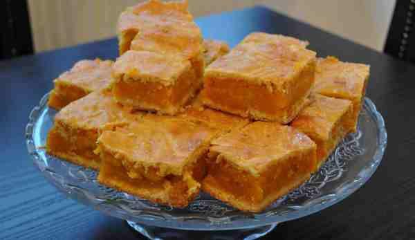 Impartim aluatul in doua parti egale. Intre doua foi de hartie pergament intindem cu sucitorul aluatul la dimensiunea tavii in care ne-am propus sa coacem placinta. Cind ajungem cu foaia la dimensiunile tavii, luam impreuna cu hartia aluatul si il asezam in tava. Turnam umplutura pe care o intindem pe toata suprafata tavii. Cea de a doua jumatate de aluat o intindem la fel intre doua bucati de hartie pergament si o taiem fasii lungi cu forma de saratele. Asezam sub forma de grilaj la suprafata placintei fasaile de aluat pe care le ungem cu un galbenus de ou amestecat cu putina apa. Coacem placinta in cuptorul incins la 180 de grade Celsius pana se rumeneste pe deasupra. Dupa racire, portionam, pudram cu zahar si servim.