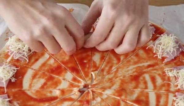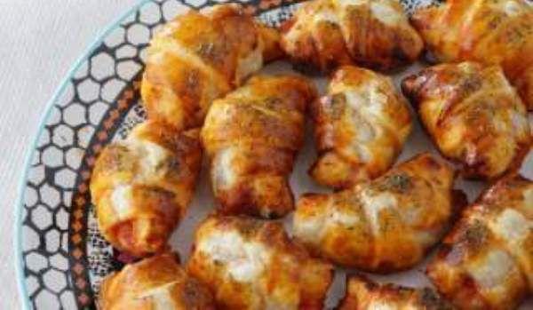 Mod de Preparare: Desfaceti aluatul si intindeti sos de rosii pe toata suprafata. Taieti aluatul in forma de triunghiuri, cu varful in centru si baza la margine. In cazul in care aluatul este patrat sau dreptunghiular, taieti-l in lungime, apoi pe latime, sa rezulte patrate sau dreptunghiuri. Fiecare patrat/dreptunghi se taie pe diagonala, astfel incat sa rezulte triunghiuri. Pe fiecare triunghi, la baza, asezati o bucata de sunca si apoi presarati un pic de cascaval ras. Se infasoara fiecare triunghi din exterior spre centru. Indoiti capetele pentru a da forma forma unui semicerc. Aranjati mini cornurile pe o foaie de copt intr-o tava. Ungeti partea de sus a cornuletelor cu galbenus de ou, astfel incat sa devina rumenii la copt. Se presara deasupra un pic de oregano. Coaceti timp de 20 minutes la180°C. Lasati sa se raceasca si gata!