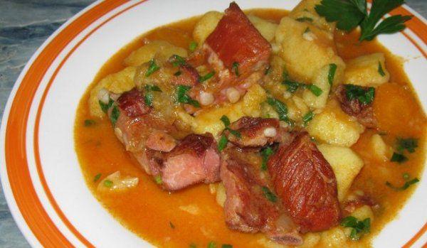 Mod de Preparare: Tocam ceapa, morcovii si le calim pentru cateva minute in uleiul incins, dupa care adaugam ardeii. Cand devin sticloase, adaugam bucatile de carne, le calim putin, apoi acoperim cu apa si dam la cuptor cam 15 minute la foc mediu. Intre timp curatam cartofii, ii taiem cubulete, si ii adaugam peste carne cand expira timpul, impreuna cu pasta de ardei si foile de dafin. Amestecam bine, completam cu apa daca este nevoie si punem inapoi la cuptor. Primele 10 - 15 minute cu capac, apoi fara, ca sa mai scada lichidul si sa se rumeneasca. Cand cartofii sunt fierti, mancarea este gata. In functie de cat e de sarata carnea, adaugam la sfarsit sare si piper. Servim langa niste muraturi aceasta mancarica delicioasa, care are aproximativ 120 de calorii la 100 de grame.