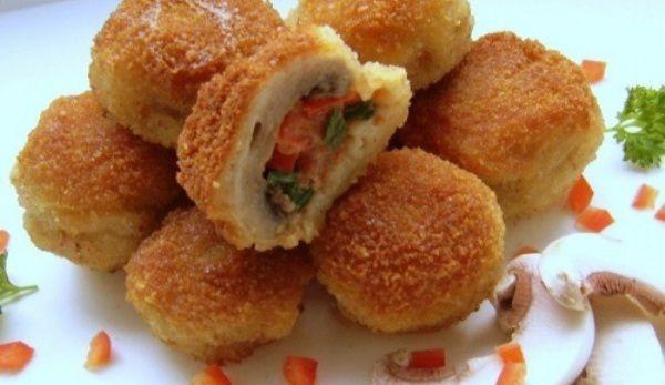 Mod de Preparare: Ciupercile se spala, se indeparteaza coditele si se lasa se se scurga bine de apa. Se amesteca pateul cu ardeiul gras tocat cuburi mici, ceapa verde taiata rondele, sare si piper dupa gust. Ouale se bat bine cu sare si piper. Se umplu ciupercile cu pasta de pate, se dau mai intai prin faina, apoi prin ou, din nou prin faina, iar prin ou si la sfarsit se tavalesc bine prin pesmet. Se prajesc in ulei incins. Se scot pe hartie absorbanta.