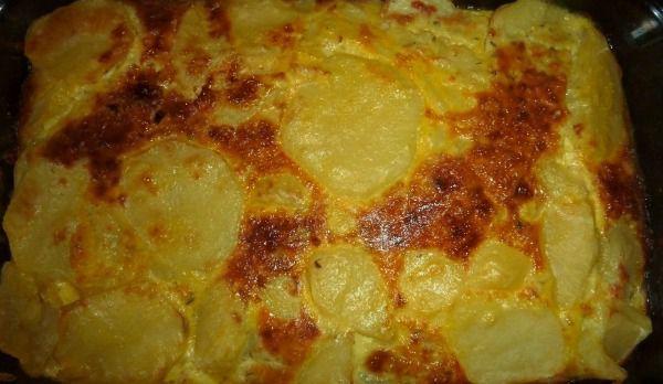 Mod de Preparare: Cartofii se fierb în coaja, în apa cu sare, se scurg si se curata. Separat, se fierb ouale, dupa care se trec sub jet de apa rece. Se unge cu unt un vas termorezistent si se aseaza în straturi jumatate din cantitatea de cartofi taiati rondele. Deasupra se pun ouale taiate felii, se adauga smântâna, se potriveste de sare si piper si se pun cartofii ramasi. Se presara cascavalul ras, patrunjelul verde tocat si se da vasul la cuptorul incalzit in prealabil, pana se rumeneste deasupra.