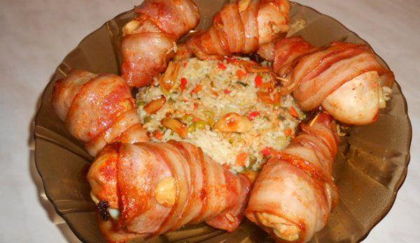 Mod de preparare: se încinge cuptorul la 200° C. Se amestecă zeama de lămâie cu usturoiul şi se asezonează, se înţeapă carnea de câteva ori cu un cuţit ascuţit, apoi se stropeşte cu amestecul preparat anterior. Se înfăşoară fiecare ciocănel într-o felie de bacon, după care se pun în tavă. Se pune restul de zeamă de lămâie şi se ţin în cuptor 45-50 de minute, până când se pătrunde carnea şi baconul devine crocant. Se servesc calde sau reci, iar restul de ciocănele se ţin la frigider într-un recipient etanş.