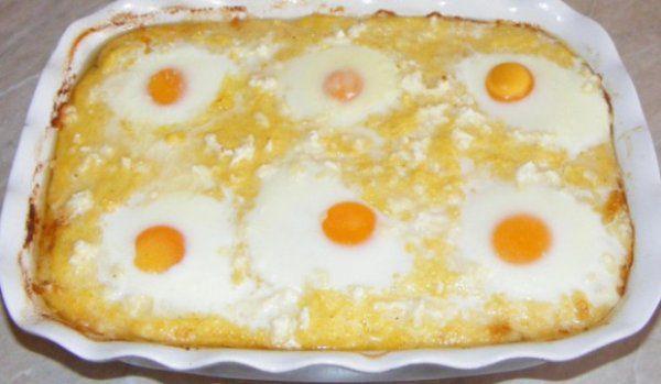 Mod de preparare: Se pun la fiert apa și laptele, amestecate, adăugam și sarea și lăsăm să dea în clocot. Când începe să fiarbă, se presară o mână-două de mălai în apă, dar trebuie să amestecăm cu un tel sau cu o lingură de lemn foarte bine, pentru a nu se face cocoloașe. Lăsăm să fiarbă câteva minute la foc mediu, amestecând tot timpul. Când preparatul s-a îngroșat, adăugăm și restul mălaiului, puțin câte puțin. Focul nu trebuie să fie puternic și trebuie amestecat în continuu. Când mămăliga e aproape gata, se încorporează și smântâna. Preparatul trebuie să aibă o consistență mai moale. După ce se ia de pe foc, jumătate din mămăligă se pune într-un vas termorezistent care a fost uns cu unt în prealabil. Peste stratul de mămăligă se pune telemeaua rasă, cârnații tăiați felii și slăninuța prăjită. Se pune alt strat de mămăligă în care se fac niște adâncituri cu lingura și în care se pun untul, ouăle întregi și cașcavalul ras. Cine dorește poate să pună mai multe straturi de mămăligă. Vasul se dă la cuptor până ce ouăle sunt făcute și cașcavalul e puțin rumenit.