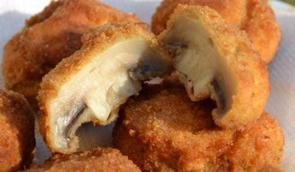Mod de preparare: Se aleg ciuperci mari si sanatoase. Se curata de pielita, se indeparteaza codita, e spala si se presara cu sare si piper. Se lasa cam o jumatate de ora sa-si traga sare, iar dupa aceea se dau prin faina. ou batut, pesmet si se prajesc in ulei pe ambele parti pina devin aurii. Se scot pe servetele absorbante de bucatarie pentru a se scurge surplusul de ulei.