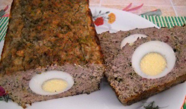 Mod de preparare: Se spală organele şi se pun la fiert, după ce sunt gata le dăm prin maşină de tocat înpreună cu carne de porc. Ceapă, usturoiul şi pătrunjelul se va tocă mărunt după ce au fost bine spălate şi se vor amestecă cu compoziţia de carne şi măruntaie se adaugă cele patru ou crude se condimneteaza după plac şi se omogenizează bine toată compoziţia, după aceea se unge o tavă cu ulei şi se aşează un strat de compoziţie şi se ornează cu ouă fierte tăiate rondele, iar se adaugă un strat de carne iar la sfârşit ouă.