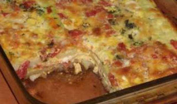 Mod de Preparare: Dovleceii se spala si se taie pe lungime. Rosiile se oparesc, se inlatura pielita si se taie cubulete. Ceapa si usturoiul se curata si se toaca. Cartofii se pun la fiert, apoi se curata de coaja si se taie felii. Verdeata se spala si se toaca marunt. Incingem cuptorul la 200 grade C. Calim ceapa si usturoiul in 2-3 linguri de ulei, adaugam rosiile si lasam sa fiarba 10 minute. Condimentam cu sare si piper. Intr-un castron facem sosul de branza. Batem oualele, adaugam laptele, smantana si branza rasa. Condimentam cu sare, piper si nucsoara. Ungem cu unt o forma termorezistenta. Asezam straturi alternative de cartofi, dovlecei, verdeata, rosii si sos de branza. Incheiem cu strat de sos de branza. Punem si untul in gramajoare pe toata suprafata tavii. Da la cuptor pentru ~ 60 minute. Cand scoatem din cuptor presaram rozmarin deasupra.