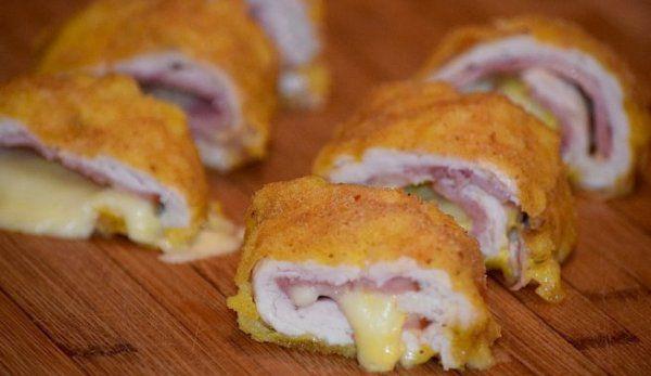 Mod de Preparare: Taiem cotletul in felii mai grosute, le batem subtiri, se sareaza, se pipereaza. Pe felia de carne asezam o felie de sunca,una de cascaval. Rulam carnea, capetele le inchidem aidoma ca la sarmale, le dam prin faina, ou, pesmet si le prajim pana devin aurii. Le servim cu garnitura de cartofi pai.