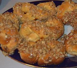 Mucenicii copti se lasa sa se raceasca, apoi se ung cu sirop si se presara peste ei nuca rasnita.
