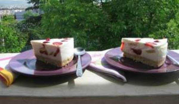 Mod de Preparare: Se incalzaste laptele cu 100 de grame de zahar si cu margarina si se adauga si aroma de rom, dupa care se toarna peste biscuiti si se amesteca bine. Produsul obtinut se pune intr-o forma te tort cu pereti detasabili. Acesta va fi baza tortului. Intr-un bol separat se amesteca mascarpone cu iaurtul, impreuna cu zaharul ramas si cu capsuni. Se prepara gelatina si se toarna peste amestec. Amestecul obtinut apoi se pune deasupra bazei si se pune in frigider pentru cateva ore. Tortul de vara cu mascarpone si iaurt se taie felii si se poate orna cu diferite fructe sau cu frunze proaspete de menta.