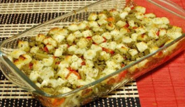 Mod de Preparare: Des facem conopida in buchetele si o spalam si curatam morcovii. Le punem la fiert pentru aprox. 10 min. si apoi le scurgem de apa. Taiem morcovii rondele si ardeiul bucati cat vrem de mari. Intr-o tava punem conopida si morcovul, peste ardeiul fasolea verde si mazarea, dupa care repartizam peste legume branza taiat cubulete. Stropim cu uleiul de masline si presaram deasupra oregano. Punem tava in cuptorul incins si coacem la foc potrivit spre mare circa 20 de min sau pana cand branza se topeste putin si se rumeneste deasupra.