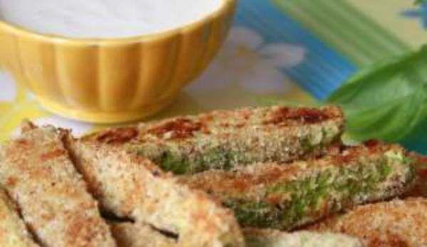 Mod de Preparare: Preincalziti cuptorul la 180 gradeC. Intr-un castron combinati pesmetul, parmezanul, sare si piper. In altul bateti ouale cu putina sare si piper. Taiati dovlecelul in fasii potrivite, pe care le tavaliti prin ou si dupa prin amestecul uscat. Le asezati pe o tava tapetata cu hartie de copt. Dati la cuptor pana devin aurii si crocante. Intre timp pregatiti sosul: amestecati smantana cu parmezanul si adaugati sare dupa gust.