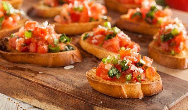 Mod de preparare: Toaca rosiile cubulete, iar ceapa, usturoiul si busuiocul cat mai fin. Combina toate ingredientele si asezoneaza cu uleiul de masline, sarea si piperul. Feliaza bagheta in diagonala, incat sa-ti iasa felii cat mai lungi. Unge-le cu putin ulei de masline si, fie prajeste-le cum ai praji in mod obisnuit paine, fie da-le la cuptorul incins pentru 4-5 minute, sa se rumeneasca. Asaza compozitia pe feliile de paine prajita si serveste bruschetele.