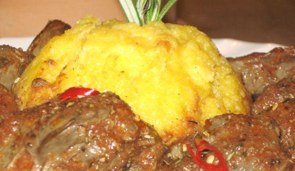 Mod de preparare: Se spala ficateii in mai multe ape. Se acopera apoi cu lapte si se lasa asa 30 minute minim. Intr-o tigaie topiti untul si adaugati uleiul. Taiati ceapa solzisori si o caliti doar pana se inmoaie. Scurgeti ficateii bine de lapte si ii asezati peste ceapa. Lasati sa se prajeasca la foc mediu pana se rumenesc usor, cca 3 minute. Ii intoarceti unul cate unul si ii lasati sa se prajeasca si pe cealalta parte 3 minute. Incercati sa nu amestecati in oala, daca vi se pare ca exista riscul ca ceapa sa se arda sau sa se prinda de fund doar scuturati tigaia cu miscari fata-spate. Umpleti o cana cu apa si dizolvati in ea toate condimentele: boia, cimbru, piper, frunzulitele de rozmarin tocate marunt, vegeta. Turnati apa peste ficatei, acestia sa fie acoperiti mai bine de jumatate. Sarati dupa gust. Lasati sa fiarba la foc mediu aprox. 10 - 15 minute, doar cat sosuletul de pe ei sa scada. Incercati sa amestecati cat de putin in oala sa nu se rupa ficateii, din nou e mai bine sa scuturati tigaia. Serviti cu mamaliguta sau piure de cartofi si presarat cu patrunjel tocat, pentru amatori (ca noi) chiar si cu orez.