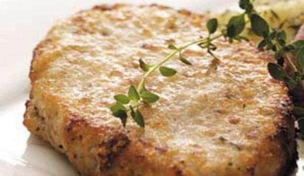 Mod de preparare: Laptele se pune într-un castron. În alt vas se amestecă parmezanul cu pesmetul, sare, piper şi usturoi. Cotletele de porc se spală şi se şterg cu un şervet. Se trec prin lapte, apoi prin amestecul cu pesmet. Se aşază într-o tavă unsă şi se stropesc cu puţin ulei. Se coc la 190 de grade Celsius, câte 9-11 minute pe fiecare parte. Se servesc calde.