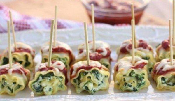 Mod de preparare: Incige cuptorul la 176 grade Celesiu. Amesteca spanacul cu ricotta, parmezan, ou, usturoi si mix italian. Potriveste de piper si sare. Sterge foile de lasagna cu prosoape absorbante de bucatarie, apoi intinde-le pe foi pergament. Injumatateste-le pe latime. Pune pe fiecare cate 2-3 linguri din mixul cu ricotta, apoi ruleaza-le astfel incat sa ajungi in partea in care nu este umplutura. Taie apoi fiecare foaie in doua si pune rulourile intr-o tava gresata. Acopera-le cu sosul pentru pizza si cu mozzarella. La final pune o folie peste tava si bag-o in cuptor pentru 18-20 de minute sau pana cand branza s-a topit. Serveste rulourile calde.