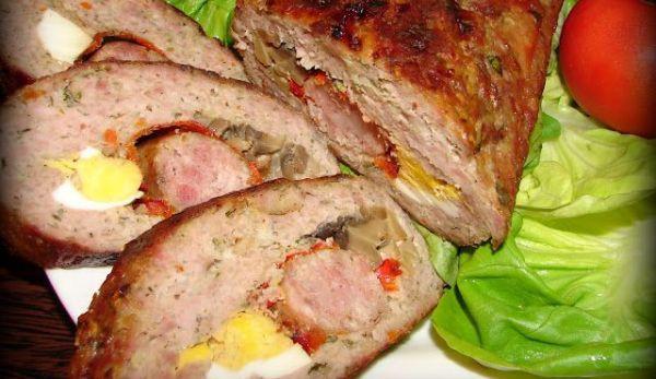 Mod de Preparare: Carnea tocata se amesteca cu 2 oua, cu faina, cu usturoiul pisat, sarea si piperul si se intinde pe hartie sau pe folie alimentara, pentru a se putea rula usor. Alte 2 oua se fierb si se taie in patru, se pun pe foaia de carne impreuna cu cascavalul ras, maslinele taiate si ardelul taiat fidelute. Se ruleaza, se unge cu putin ou si presoara seminte de susan, se da cuptor cca o ora. Se taie rece ca sa nu se desfaca. Sa aveti pofta!