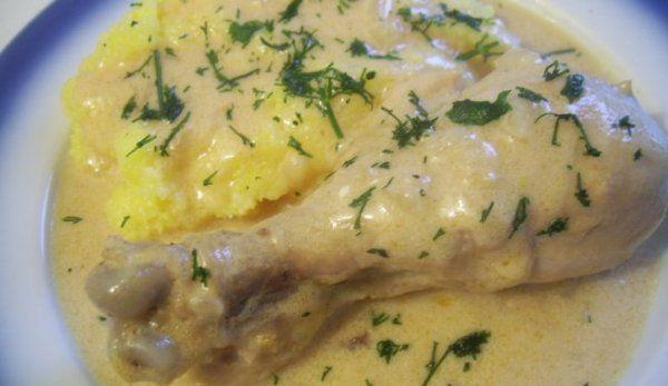 Mod de Preparare: Pieptul de pui se pune la fierta cu putina sare (pana devine fragid) cca 20 de minute, la foc potrivit. Se caleste ceapa, tocata marut (sau dupa preferinte). Separat se bat ouale, se adauga smantana si faina. Cand puiul este fiert se taie bucati mai mici si mai mari si se pune la calit cu ceapa taiata marunt... imediat se toarna si compozitia cu smantana si se mai lasa 10 minute la foc mic si mestecand continu. Se poate da un gust de delikat se serveste cu mamaliguta calda.