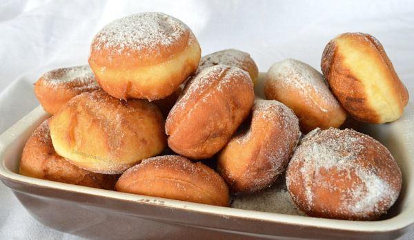Mod de Preparare: Jumatate din cantitatea de lapte se amesteca cu drojdia si cu faina, apoi se lasa la dospit. Restul de lapte impreuna cu zaharul, ouale, romul, uleiul, sarea, vanilia si coaja de lamaie se pun intr-o craticioara pe foc. Se amesteca cu telul pana frige putin la deget. Se amesteca cu drojdia, apoi se pune treptat faina si se framanta bine pana nu se mai lipeste. Se mai framanta putin cu niste ulei caldut ca la cozonaci. Se lasa sa creasca vreo 40 minute la cald. Se imparte in 3. Se intinde o parte de 1 cm grosime si se taie in forma dorita. Se mai lasa putin pe masa la crescut, apoi se prajesc.