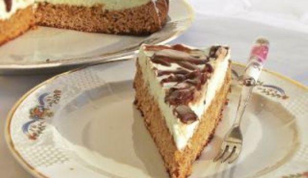 Crema: Smantana o mixam impreuna cu zaharul, pana se intareste bine. Adaugam mascarpone si siropul de menta si mai mixam un minut. Cand blatul este rece, intindem uniform crema iar apoi preparam glazura. Amestecam ingredientele si le frecam bine cu lingura iar apoi ne jucam cu glazura deasupra prajiturii. Dublati cantitatile daca doriti acoperirea completa a cremei.