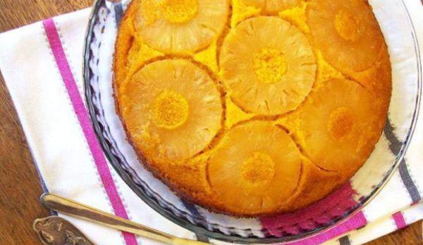 Mod de Preparare: Rondelele de ananas se scot din conserva si se scurg de suc. 7 se pastreaza intregi iar 3 se taie bucatele mici. Pentru aluat, untul trebuie sa fie moale, la temperatura camerei. Se bate untul cu zaharul, se adauga praful de copt si apoi se incorporeaza, altarnand, faina si cele 2 oua. Trebuie sa rezulte un aluat moale, ca o pasta. Se adauga bucatelele mici de ananas in aluat si se amesteca din nou. Separat se pregateste un caramel, din cubuletele de zahar inmuiate in apa. Daca nu aveti o tigaie speciala pentru cuptor, cu maner din metal, in care realizati practic tarta, trebuie lucrat repede. Cand caramelul are culoarea potrivita se toarna repede in forma de tarta avand grija sa fie repartizat pe toata suprafata acesteia, inclusiv pe margini. Trebuie putina indemanare si rapiditate deoarece se intareste imediat. Sincer, mie nu mi-a iesit din prima, si a trebuit sa lucrez in doua reprize.  Se aseaza cele 7 rondele de ananas in floare in forma de tarta peste caramel si deasupra se toarna aluatul. Se da la copt, 20-25 minute la 180 de grade. Incercati cu scobitoarea inainte de a o scoate din cuptor. Imediat dupa ce ati scos-o din cuptor, rasturnati tarta pe o farfurie. Iarasi trebuie lucrat repede pentru ca sa nu se intareasca caramelul.
