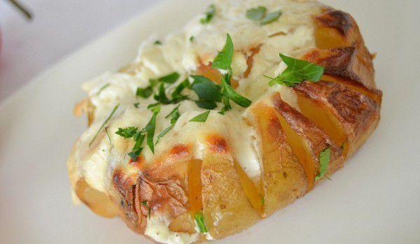Mod de preparare: Cartofii se spală şi se pun în folie de aluminiu. Pune-i în tavă și dă-i la copt cuptorul încins, aproximativ o oră. Untul se pune într-un castron şi se freacă spumă. Se condimentează după gust cu sare şi pier şi se aromatizează cu verdeaţa uscată. Pune-l pe o folie din aluminiu şi mulează-l în formă de baton. Lasă-l apoi o oră, la rece, să se întărească. Cartofii copţi se taie în două şi se presară cu telemea rasă, şunculiţă afumată tăiată felii şi caşcaval ras. Se pune apoi câte o bucată din untul aromat deasupra, să se topească încet. Se ornează cu verdeaţă tocată mărunt, opțional.
