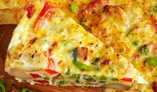Mod de preparare: Încălzește cuptorul la 180 de grade. Amestecă bine într-un castron ouăle, condimentele, sarea, piperul, împreună cu o lingură de apă. Într-o tigaie pe care o poți băga la cuptor, topește untul (la foc mediu) și sotează ceapa, până devine moale și transparentă, aproximativ 2-3 minute, apoi adaugă legumele și șunca sau carnea și mai ține pe foc alte 2 minute. Îndepărtează tigaia de pe foc, adaugă compoziția cu ouăle bătute și adaugă deasupra și brânza sau cașcavalul.