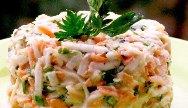 Mod de Preparare: Se curata de coaja telina, morcovul si marul, se dau pe razatoare. Se amesteca cu maioneza, ulei de masline si se condimenteaza cu sare si piper.